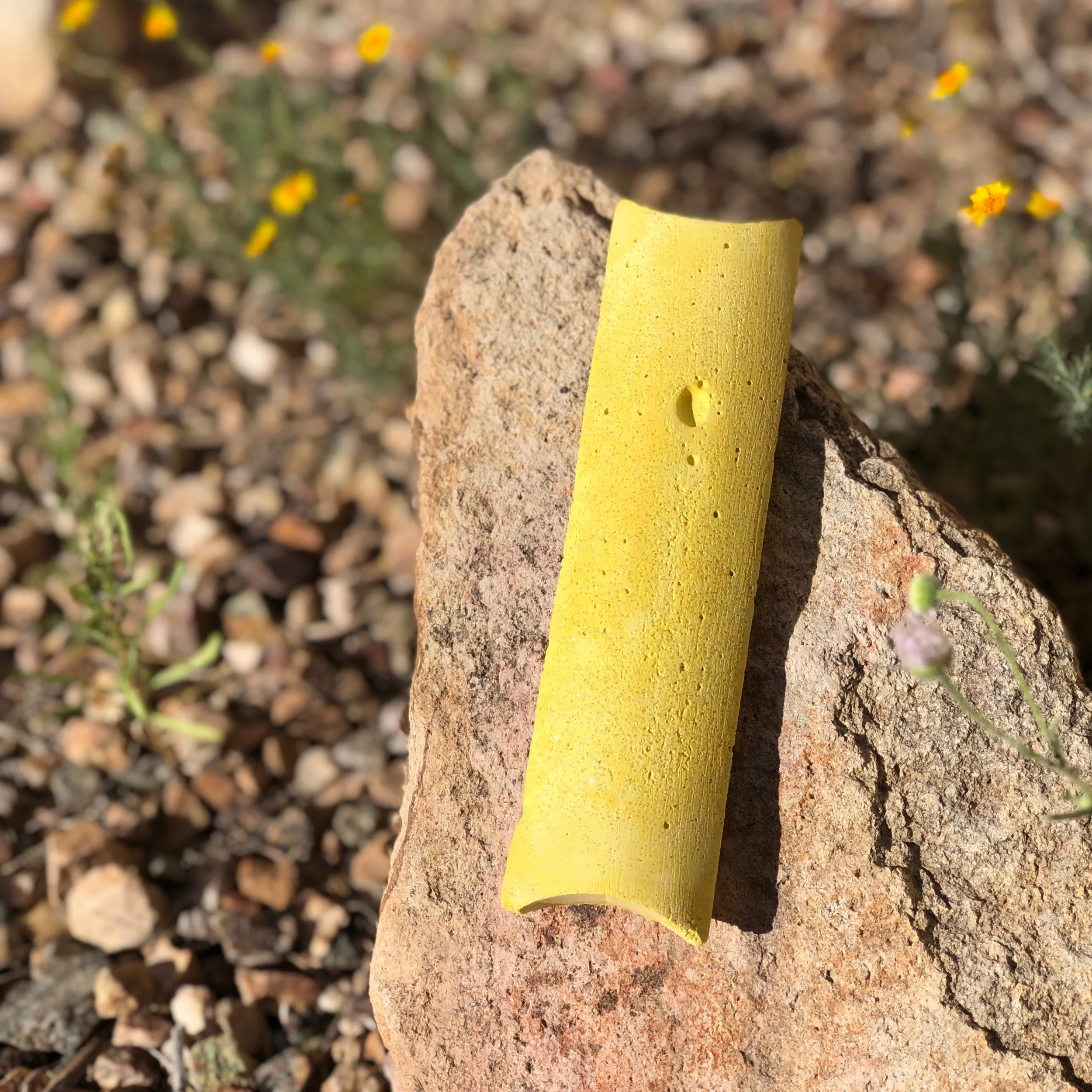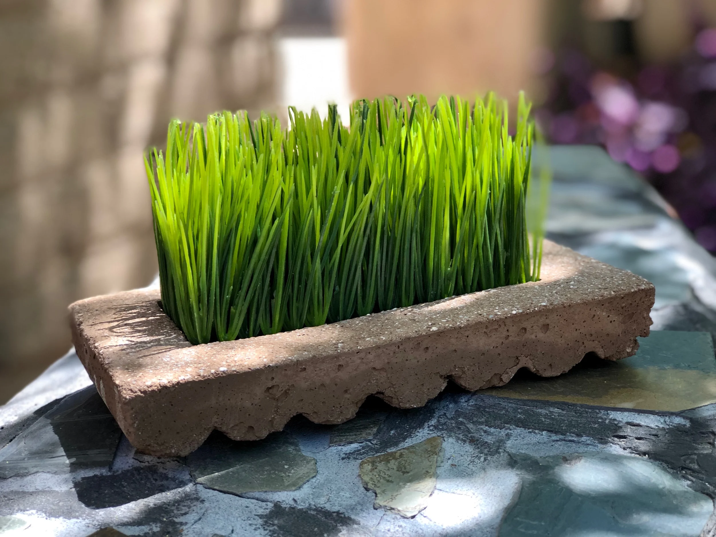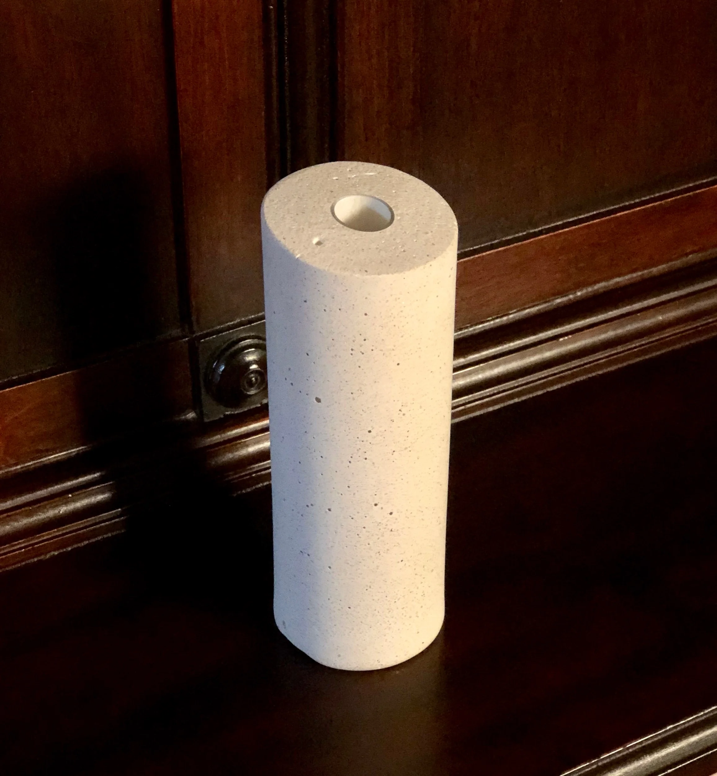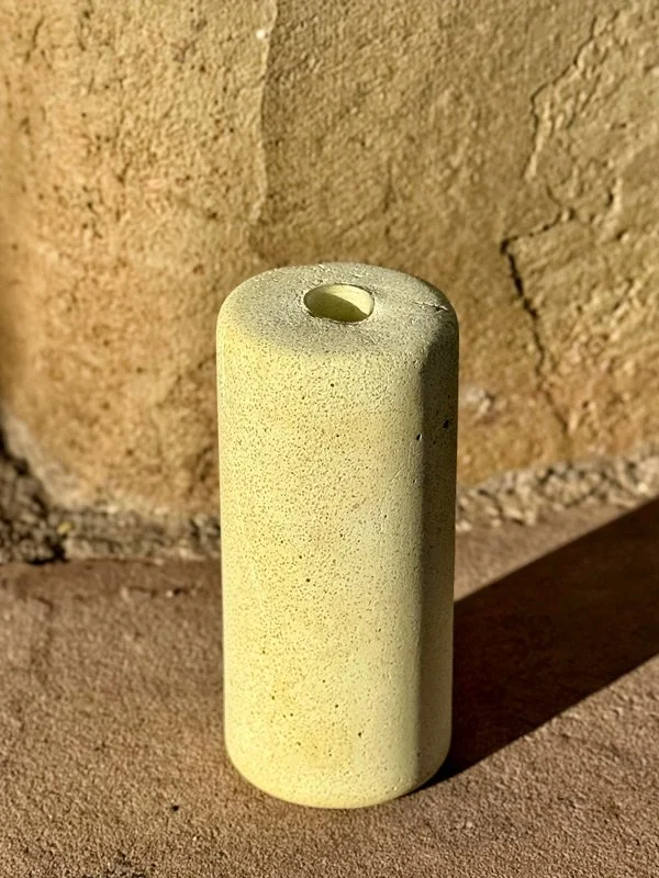 The material was hand mixed, artisanal concrete using locally sourced aggregate poured into a paper or plastic mold. It was then sanded and sealed with boiled linseed oil and pure turpentine.